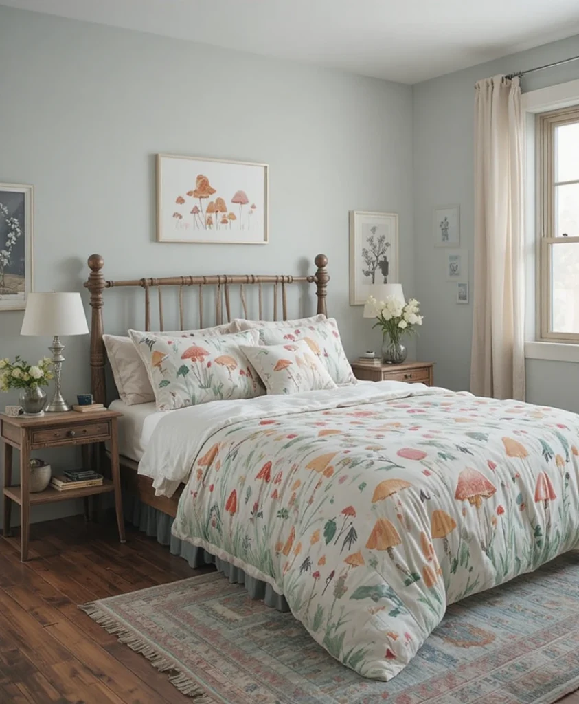 11. Mushroom-Themed Bedding for a Cozy Retreat