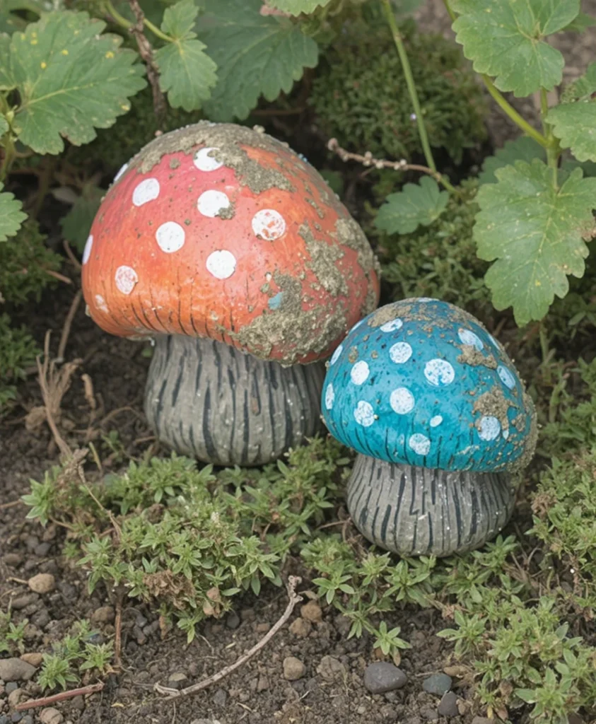 I’ve painted small stones to look like mushrooms and placed them in my garden. It’s a simple yet charming way to extend mushroom decor outdoors. The result feels whimsical and personal, like a hidden detail waiting to be noticed.