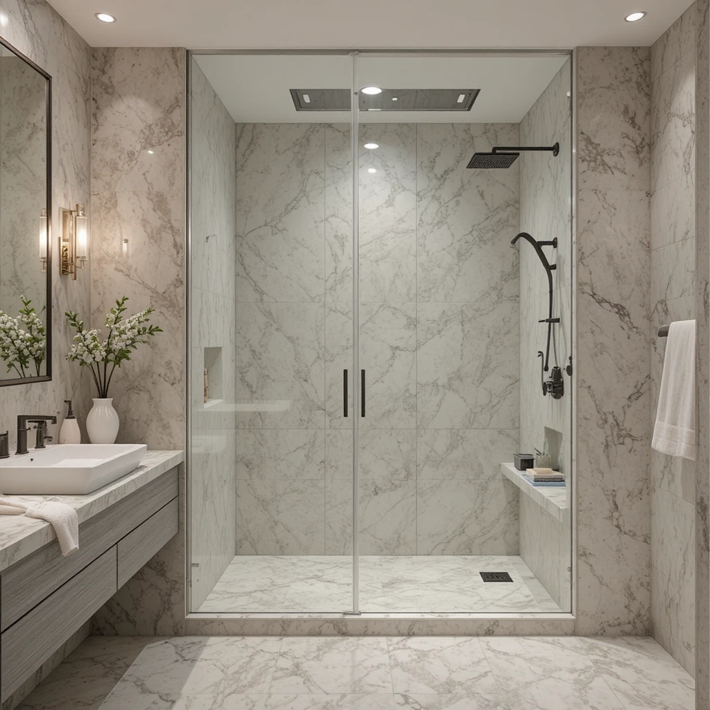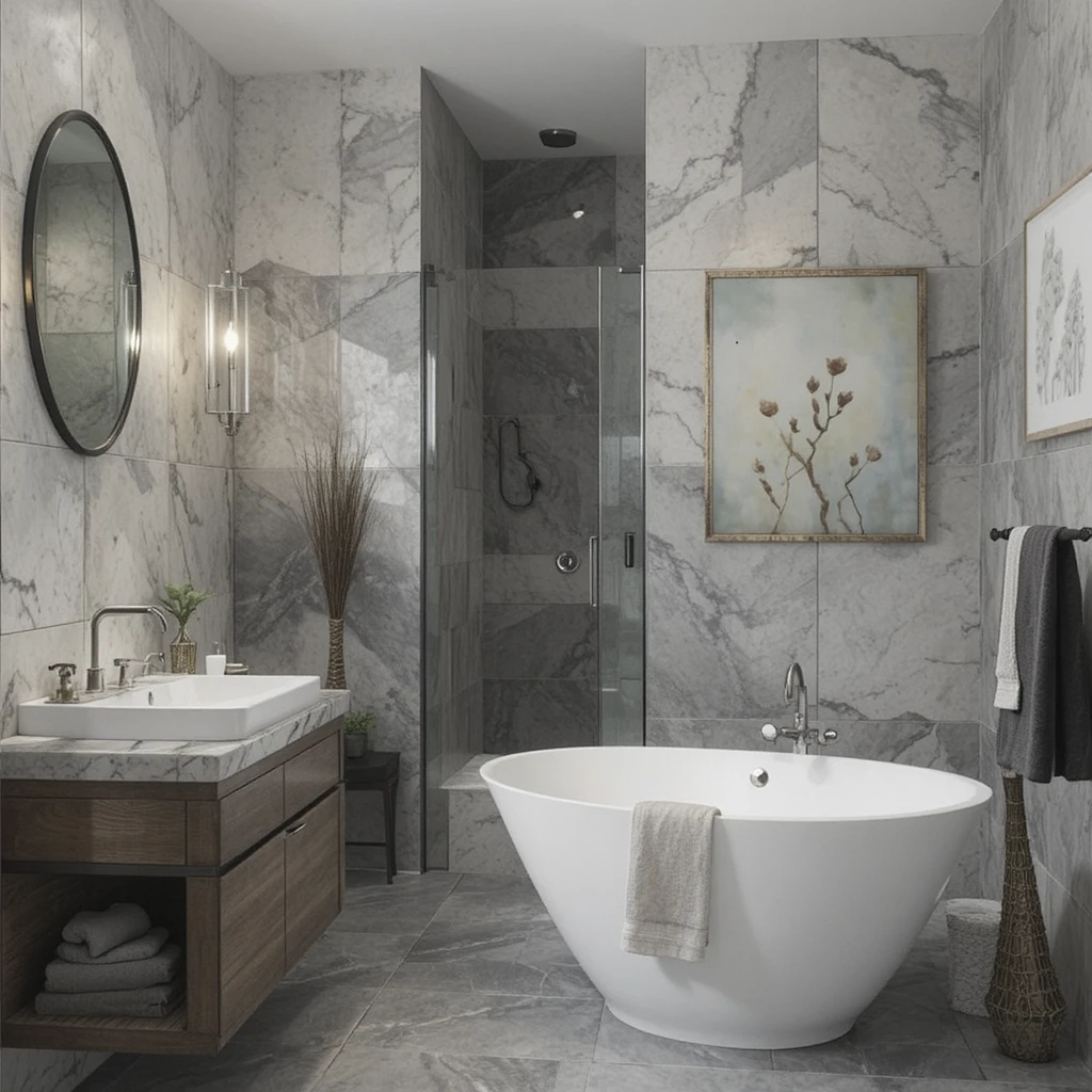 Choose marble with fine veining to add interest without overwhelming the room. The soft swirls of grey or beige enhance your bathroom’s luxurious ambiance effortlessly.