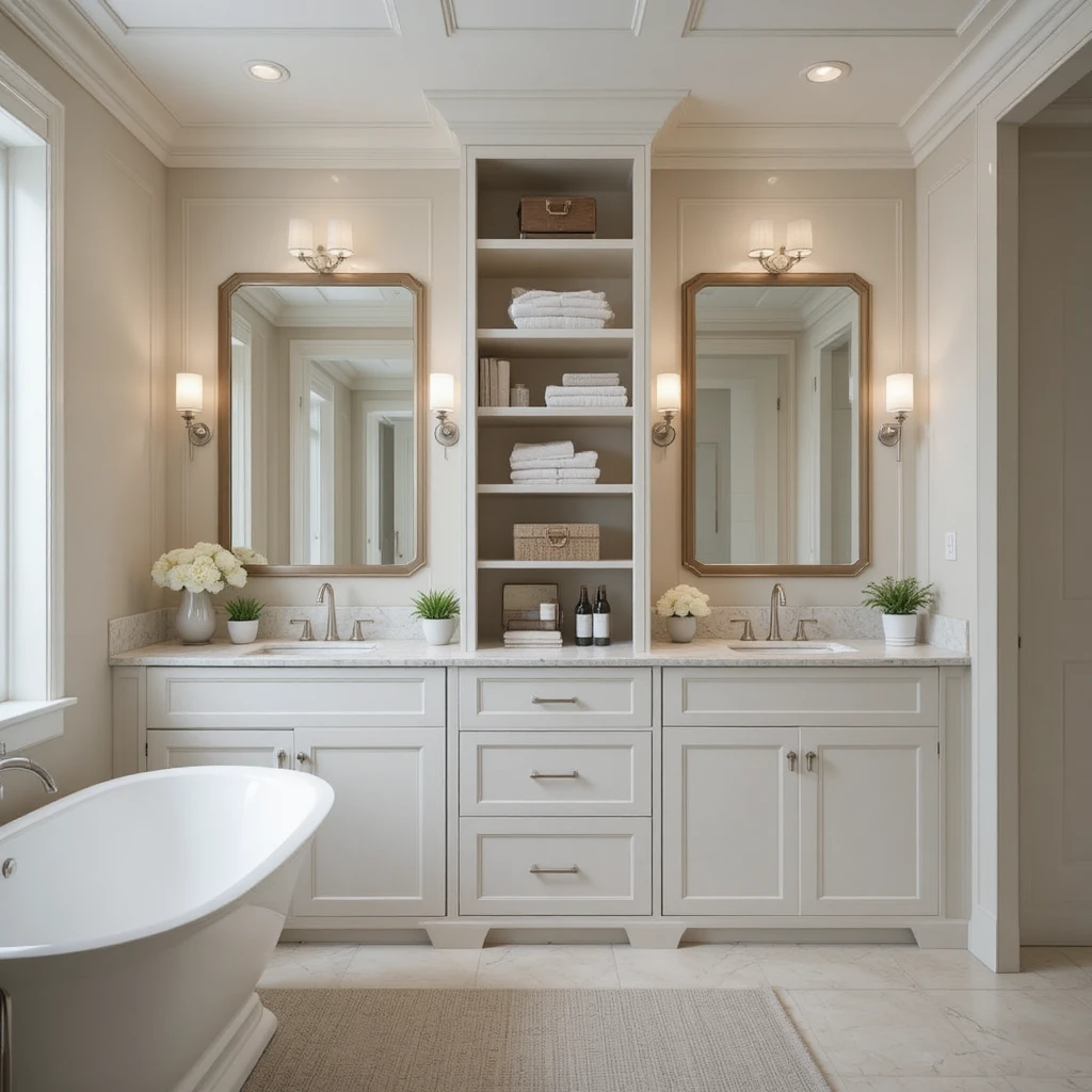 Incorporate oak or walnut vanities to infuse natural texture into your space. The wood tones contrast beautifully against pale tiles, bringing an inviting, organic charm.