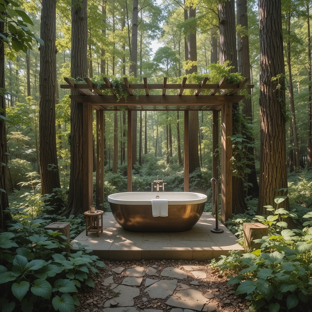 Install your open air bathroom near a cliff or elevated spot to enjoy breathtaking panoramic views while you soak. The cool breeze and open horizon create an unmatched sense of freedom and connection with the world.