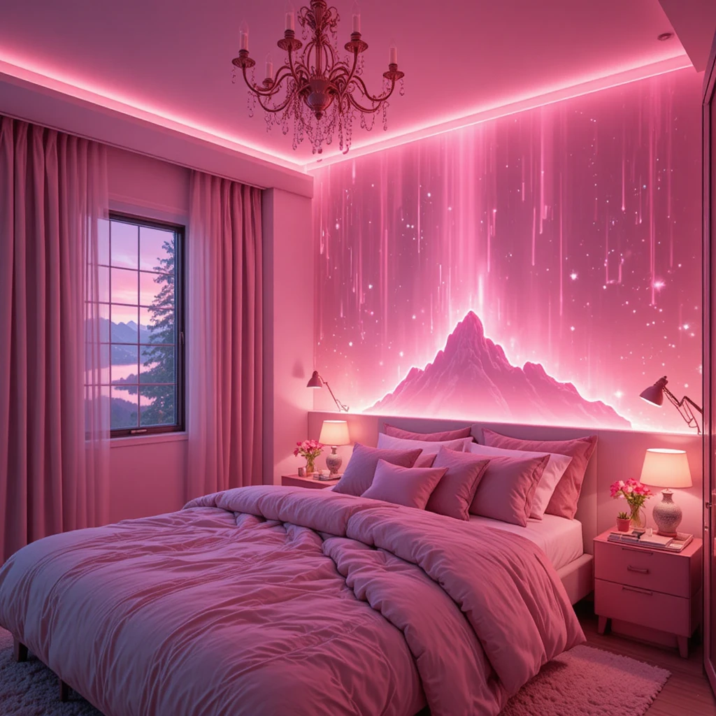 Add layered lighting to mimic the effect of a pink aurora. Combine LED strip lights, soft pink bulbs, and diffused lamps to create ethereal illumination that shifts gently like northern lights — enchanting, fluid, and deeply relaxing.