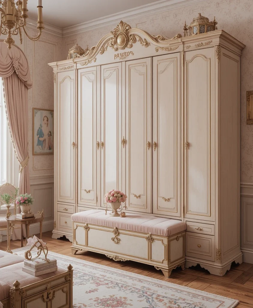Storage is seamlessly integrated through decorative trunks, upholstered benches, or ornate wardrobes. Princess bedroom ideas 2026 prioritize functionality while ensuring storage pieces feel decorative, not utilitarian.