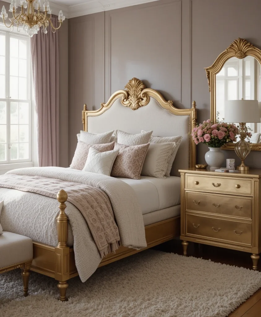 Delicate gold or brass accents on bed frames, drawer handles, or mirrors add understated luxury. Rather than bold metallics, princess bedroom ideas 2026 favor brushed finishes that reflect light softly. This detail brings a refined royal feel while staying modern.