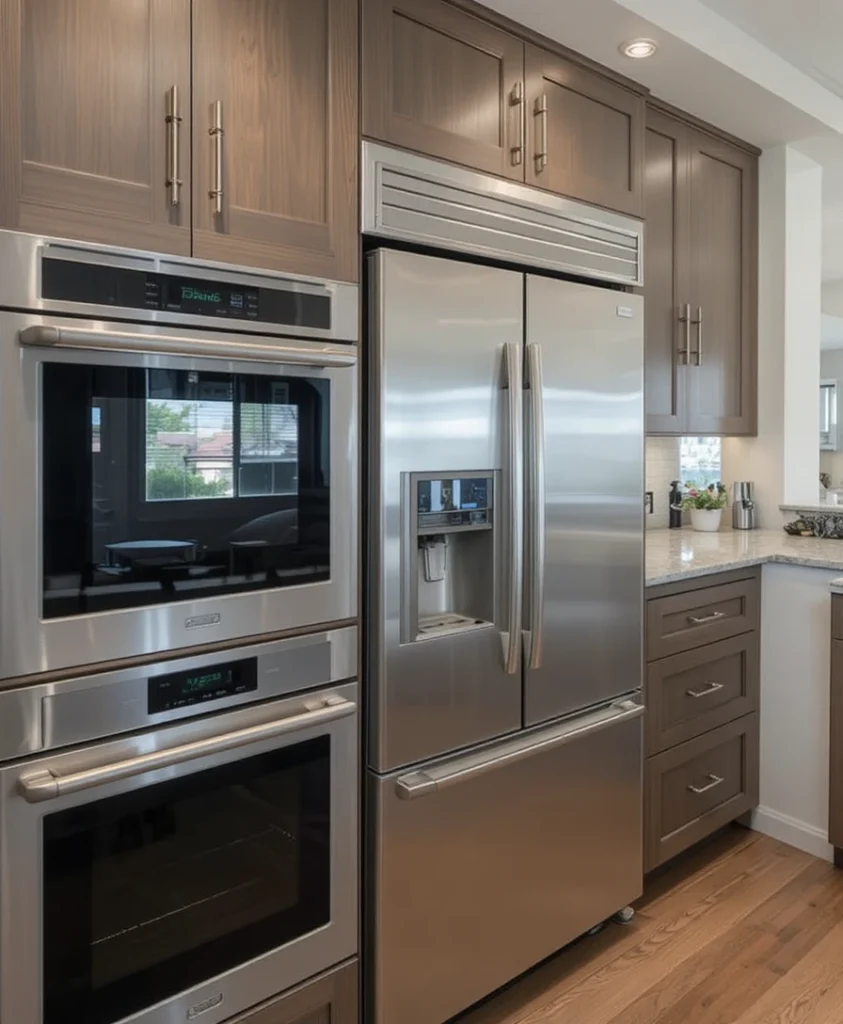 Integrated appliances are a hallmark of an efficient small kitchen remodel. Built-in ovens, concealed refrigerators, and flush-mounted dishwashers maintain a cohesive appearance, allowing the kitchen to feel larger and more refined.