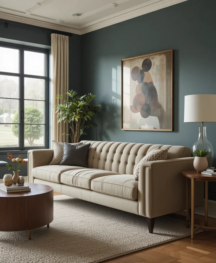 Bold colors like deep teal, rust, sapphire blue, and mustard yellow are making waves in sofa in living room ideas 2026. A statement sofa in a rich hue becomes the focal point of the living room, allowing the rest of the décor to remain simple and balanced.