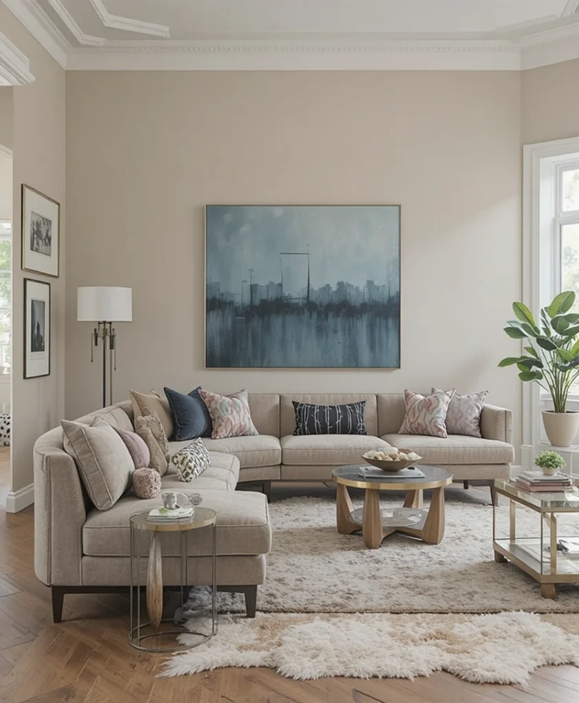 A neutral sofa remains a classic choice in sofa in living room ideas 2026, but the twist lies in the accessories. Bold rugs, statement lighting, or colorful cushions bring energy to the space while keeping the base timeless and adaptable.