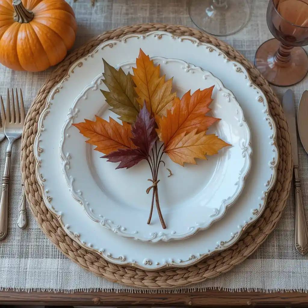 Scatter real or faux maple leaves across your table runner or mantel for a natural, colorful Thanksgiving aesthetic.