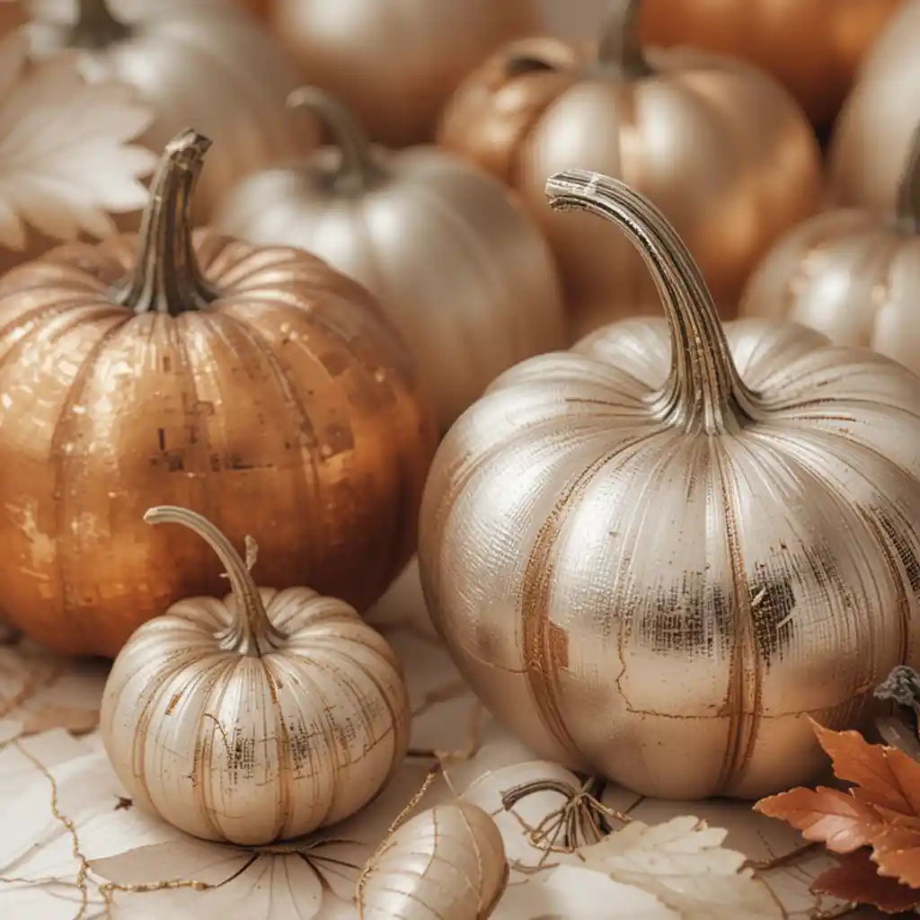Paint small pumpkins in copper, silver, or gold metallic shades to add sparkle and depth to your Thanksgiving decorations.