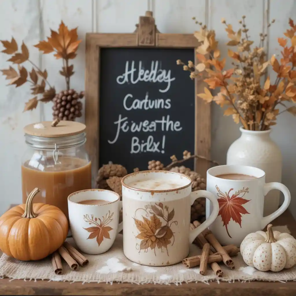 Set up a hot cider or cocoa bar with decorative mugs, cinnamon sticks, and seasonal touches to add both function and charm.