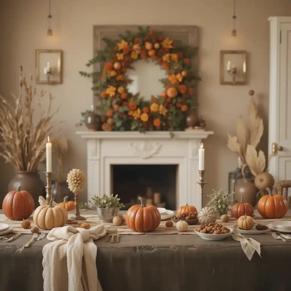 Swap out bright orange pumpkins for white, beige, or muted pastel pumpkins to create a chic and calming Thanksgiving aesthetic that feels modern yet festive.