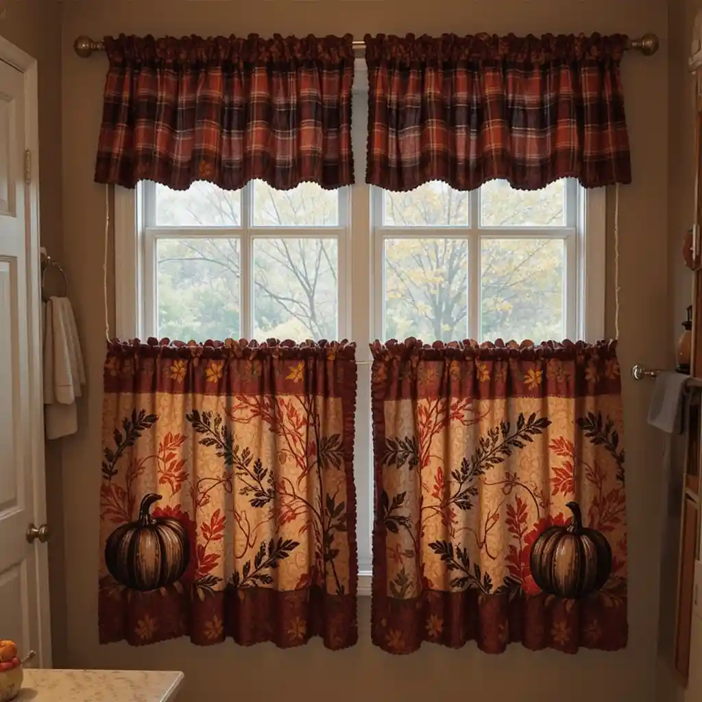 If your bathroom has a window, swap the curtains with plaid, checkered, or leafy designs. They add warmth and complete the holiday theme.