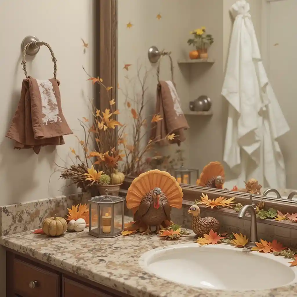 Place tiny turkey figurines or décor pieces on counters or shelves for a playful nod to Thanksgiving. It brings cheer and lightheartedness to your bathroom style.