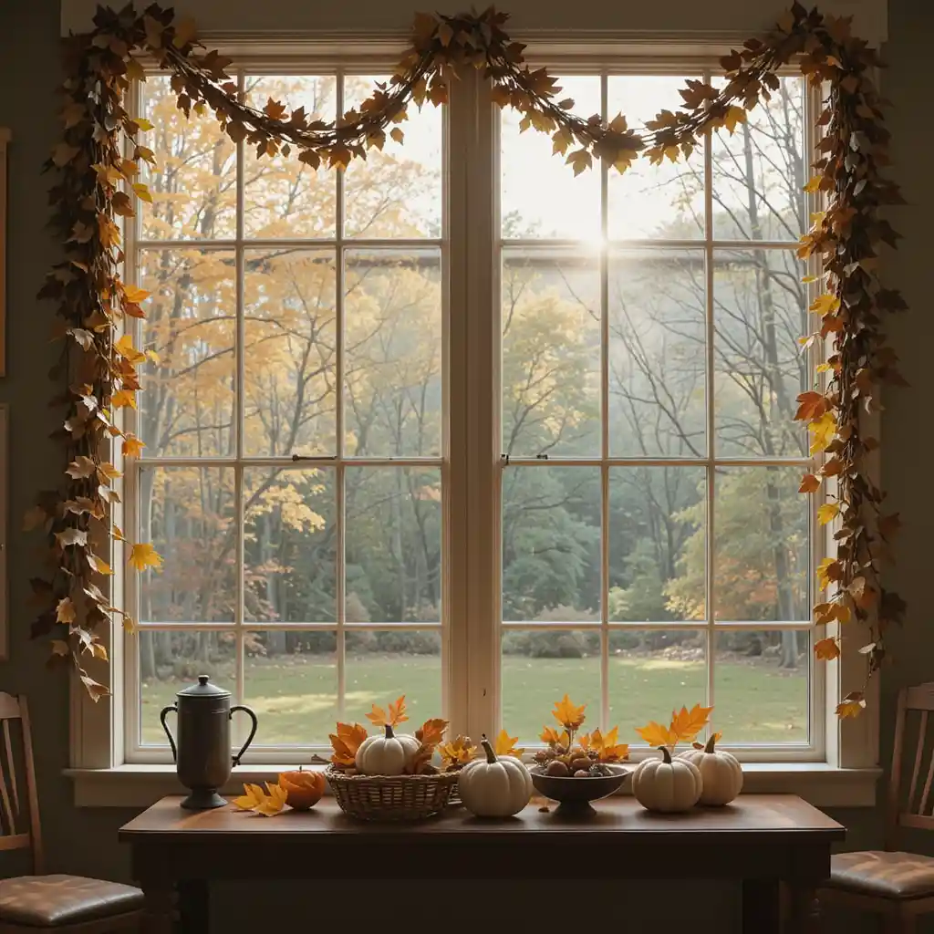 Drape garlands of faux leaves or eucalyptus across your windows. The natural look frames the view beautifully and brings the autumn season inside your home.