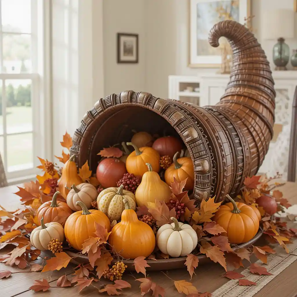 The cornucopia, or horn of plenty, is a traditional Thanksgiving symbol. Fill it with apples, gourds, and autumn leaves for a stunning table centerpiece that represents abundance.
