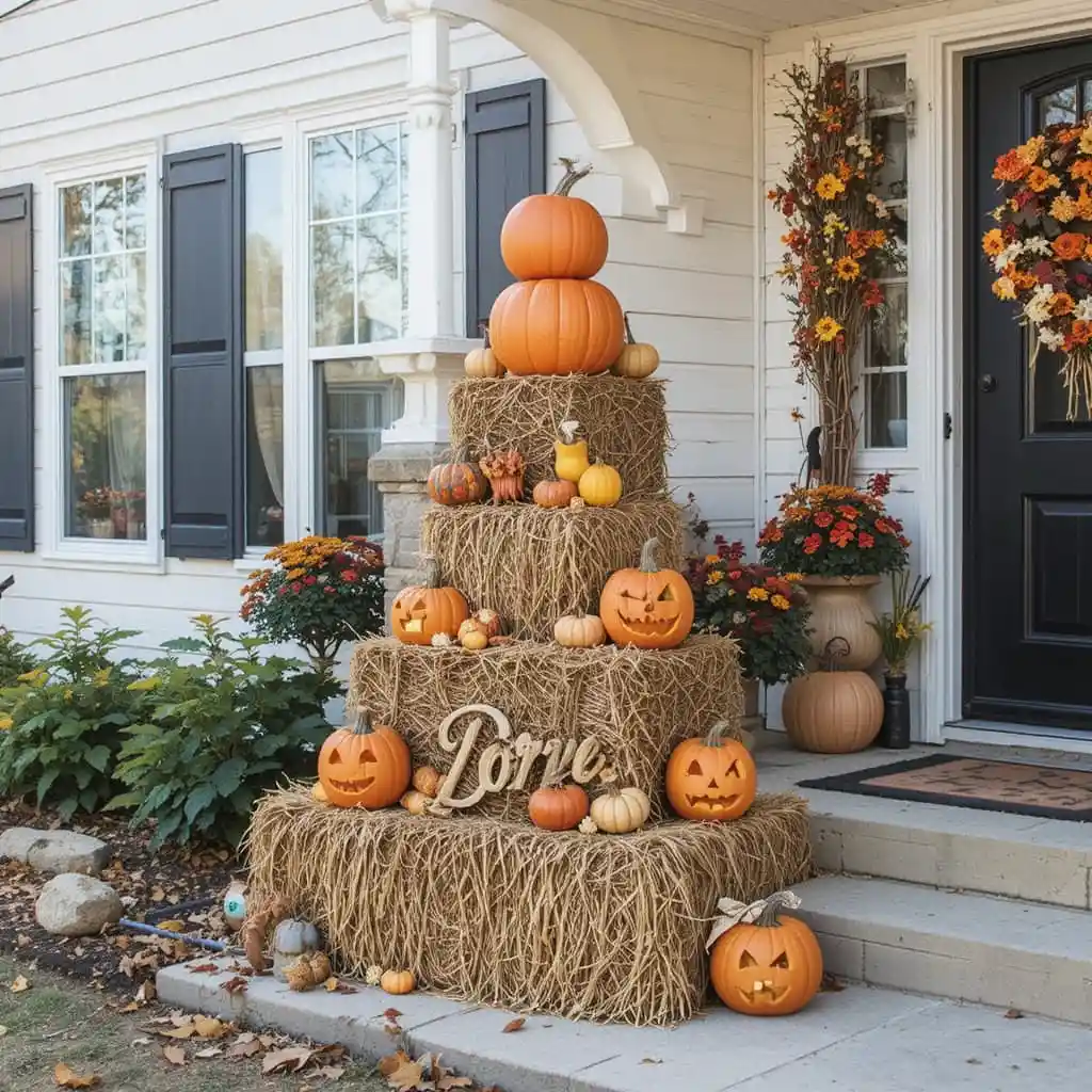 Stack hay bales and pumpkins into a tiered tower near your front porch. It’s a show-stopping decoration that highlights the harvest season.