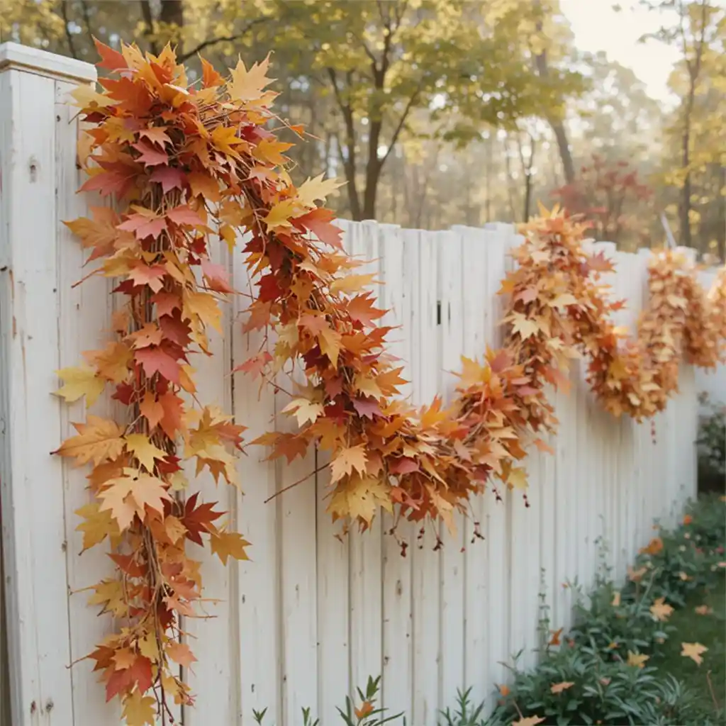 Drape garlands of faux autumn leaves across tables or fences. The warm colors instantly boost the festive vibe of your outdoor celebration.