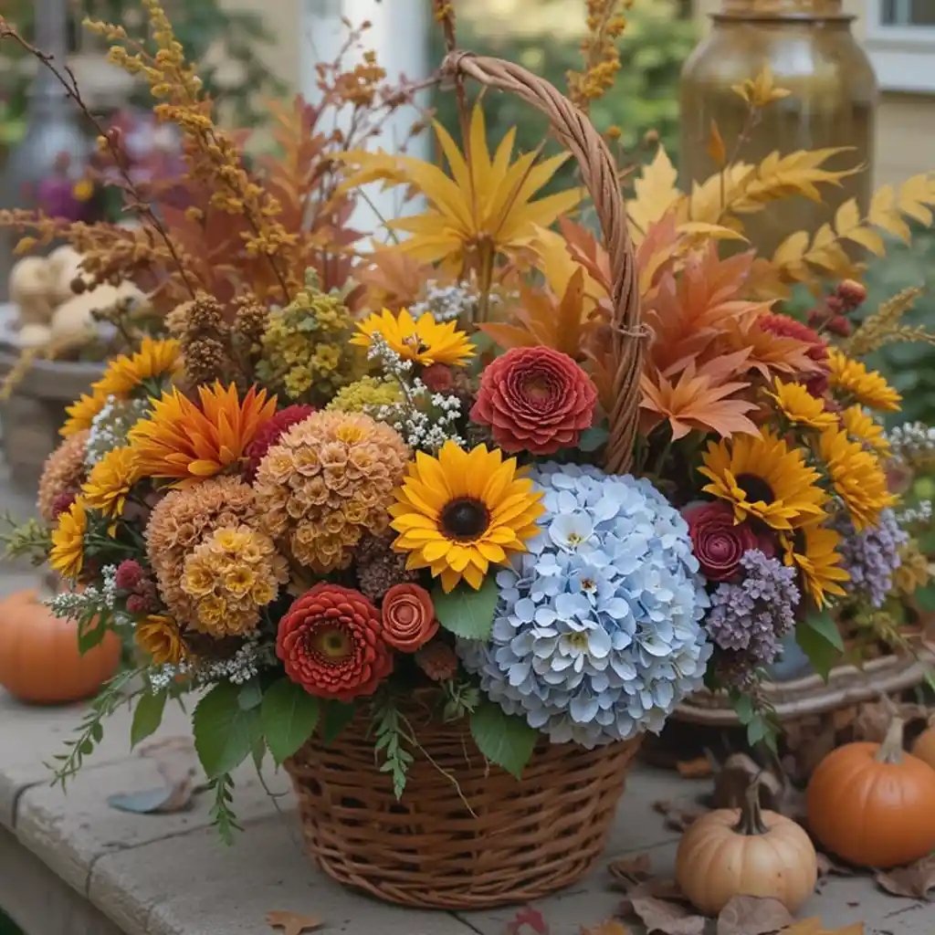 Create beautiful arrangements using baskets filled with mums, sunflowers, or hydrangeas. These flowers bring natural beauty to your Thanksgiving party.