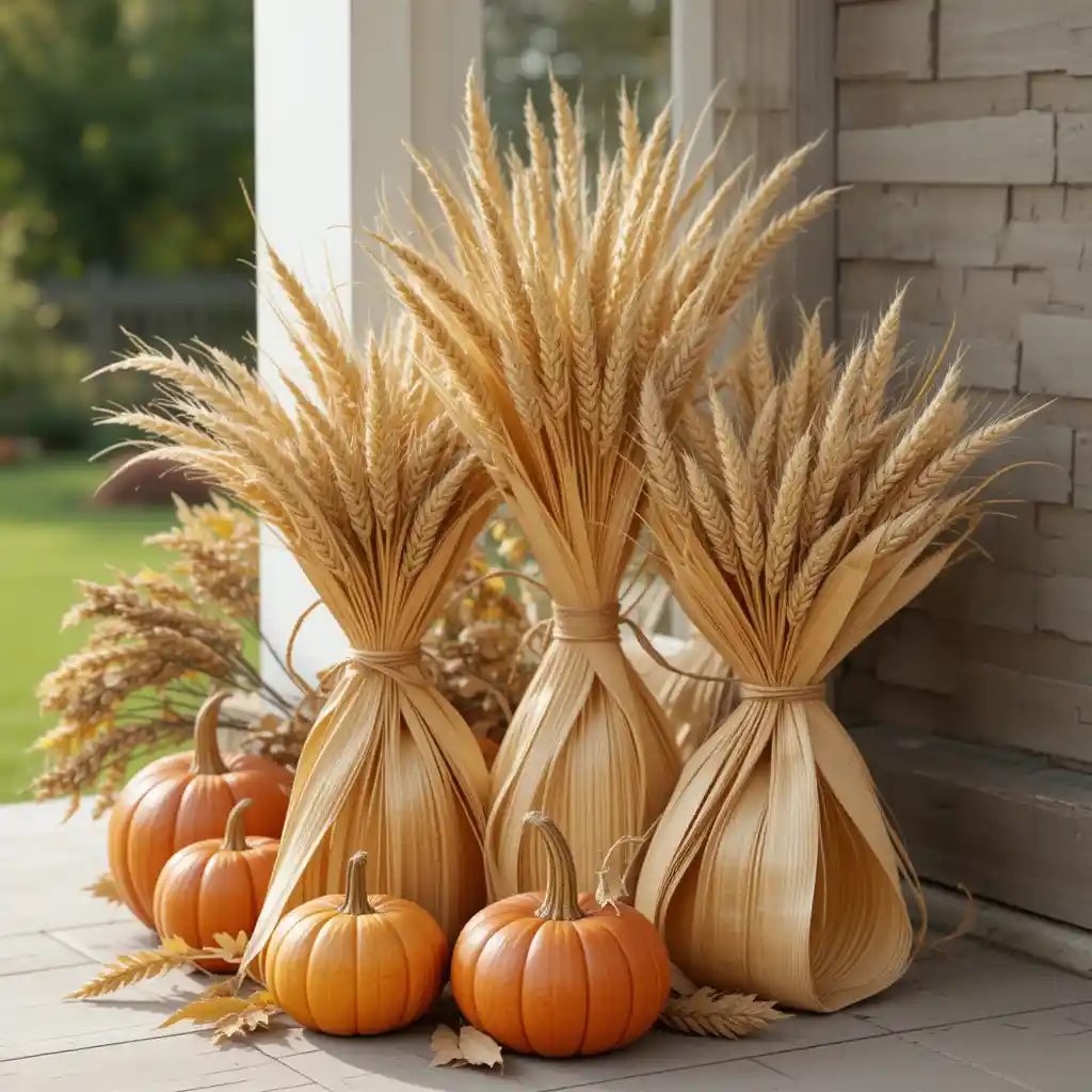 Decorate corners or tables with tied corn husks and wheat bundles. They represent the harvest season and bring authentic autumn flair.