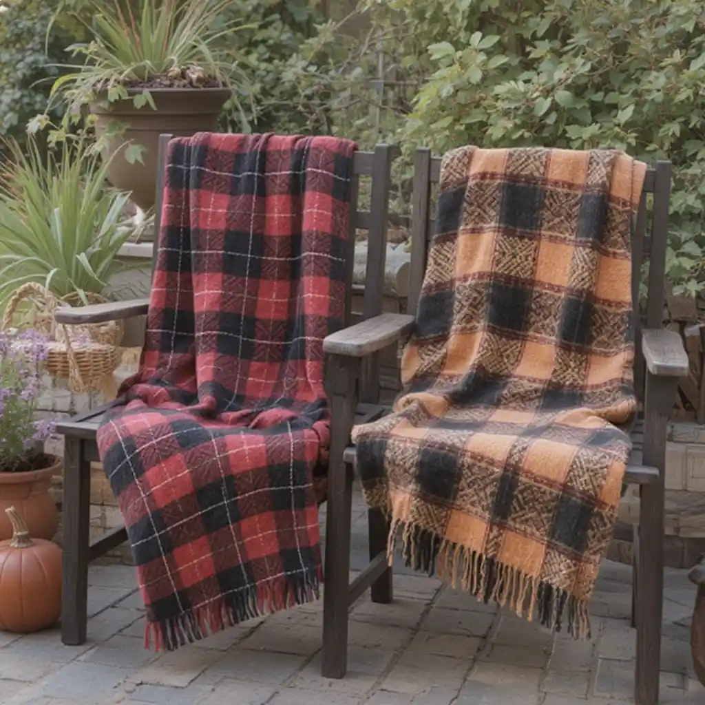 Place plaid throw blankets on chairs or benches. Guests can wrap themselves up as the evening gets chilly, combining comfort with festive style.