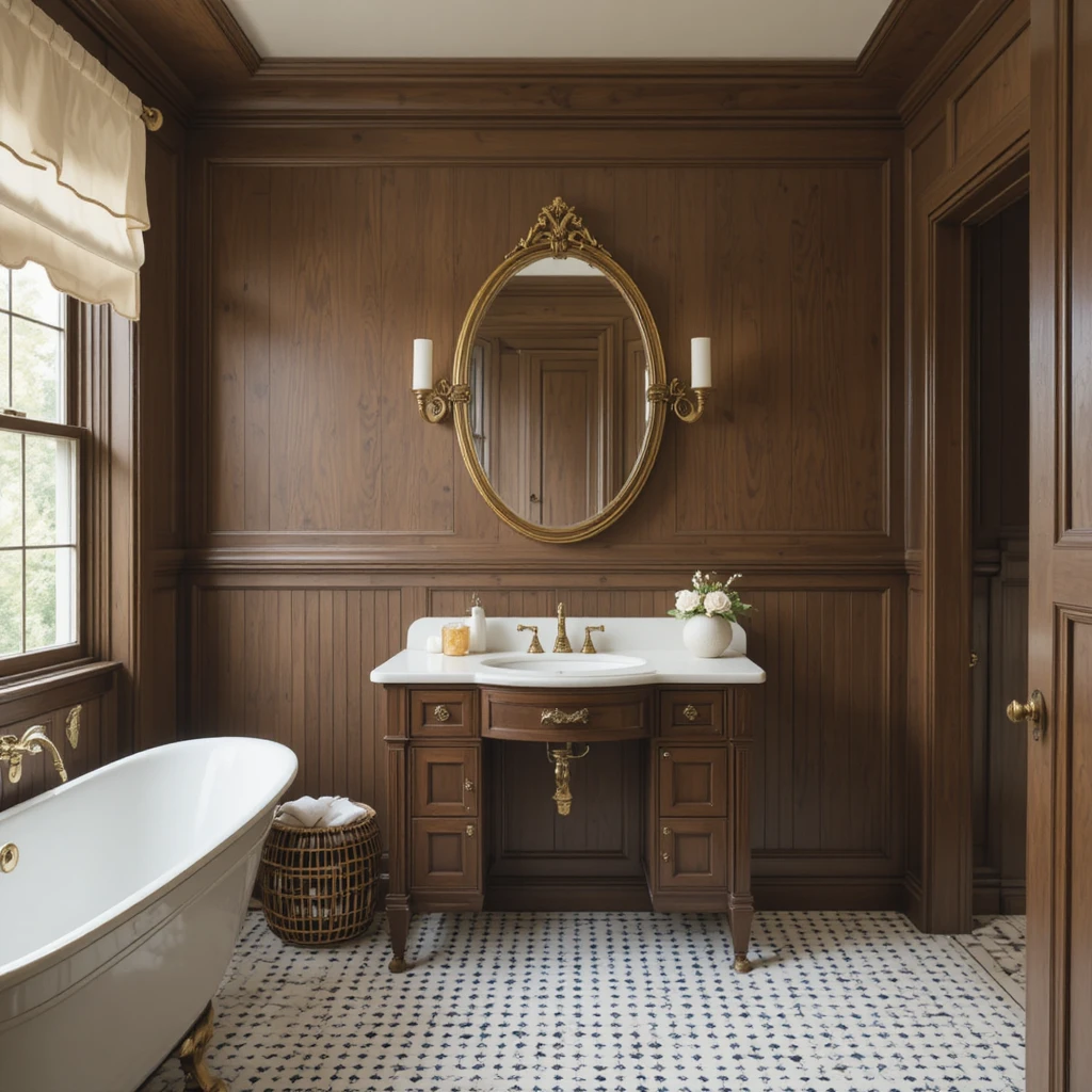 Add crown molding, beadboard, or wainscoting to give the walls architectural richness. These classic touches deliver warmth and craftsmanship, grounding vintage appeal. They redefine sophistication in your vintage bathroom style.