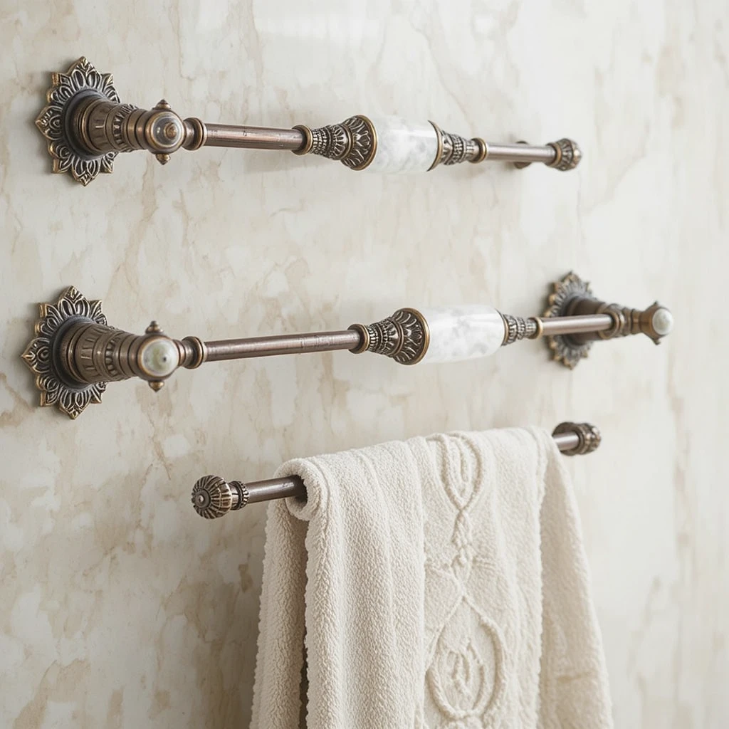Select Victorian-style towel bars, glass knobs, and ornate hooks for finishing touches. Small details make a significant impact when building a vintage bathroom style theme. These accents create a cohesive and treasured environment.