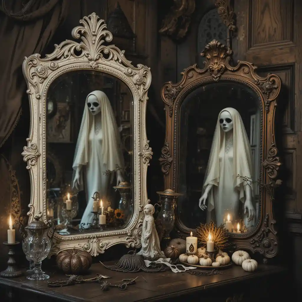 Old mirrors with distressed frames instantly bring haunted-house energy. Place them in dim corners to create ghostly reflections.