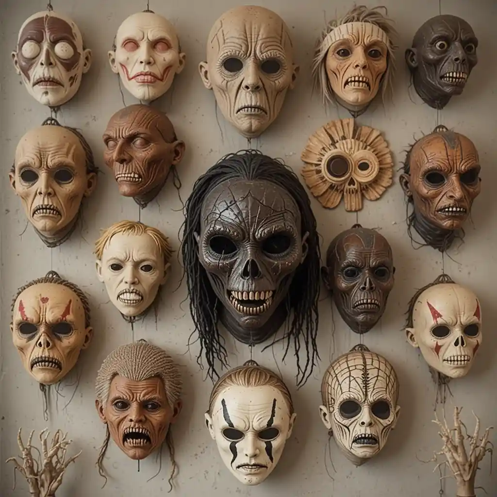 Instead of wearing them, display old-fashioned Halloween masks on walls. Their quirky designs create a spooky gallery effect.
