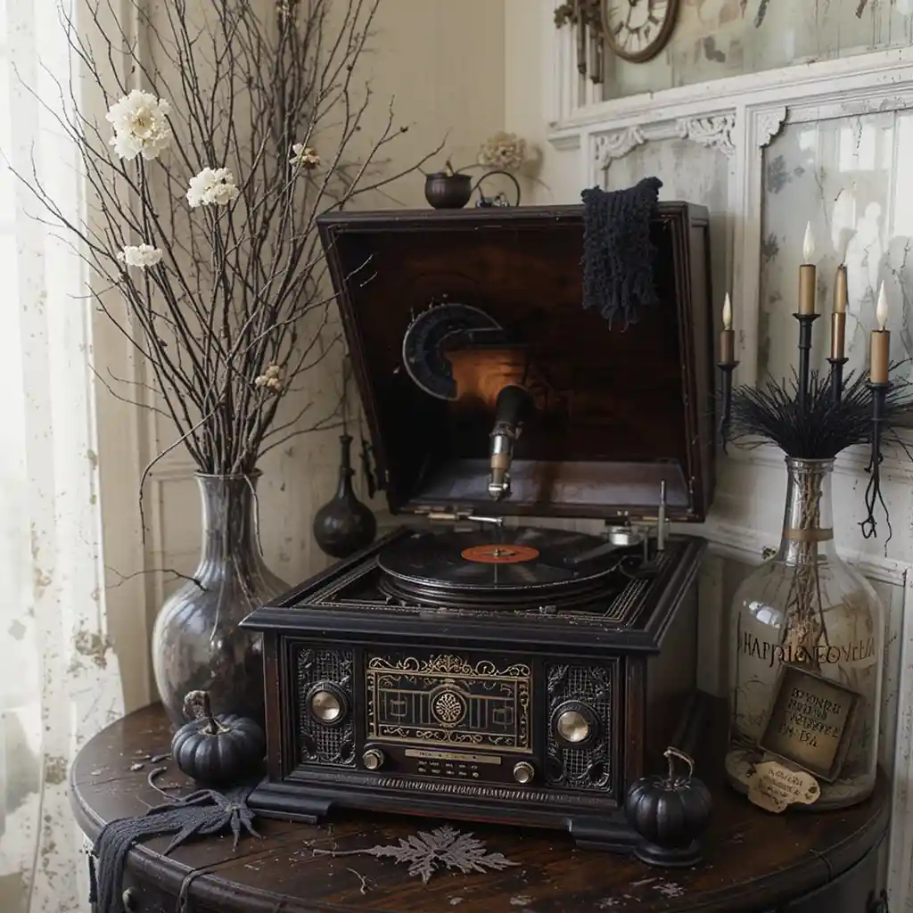 Place an antique phonograph or old radio in your living room corner. Even if it doesn’t play, it adds mysterious 1920s Halloween charm.