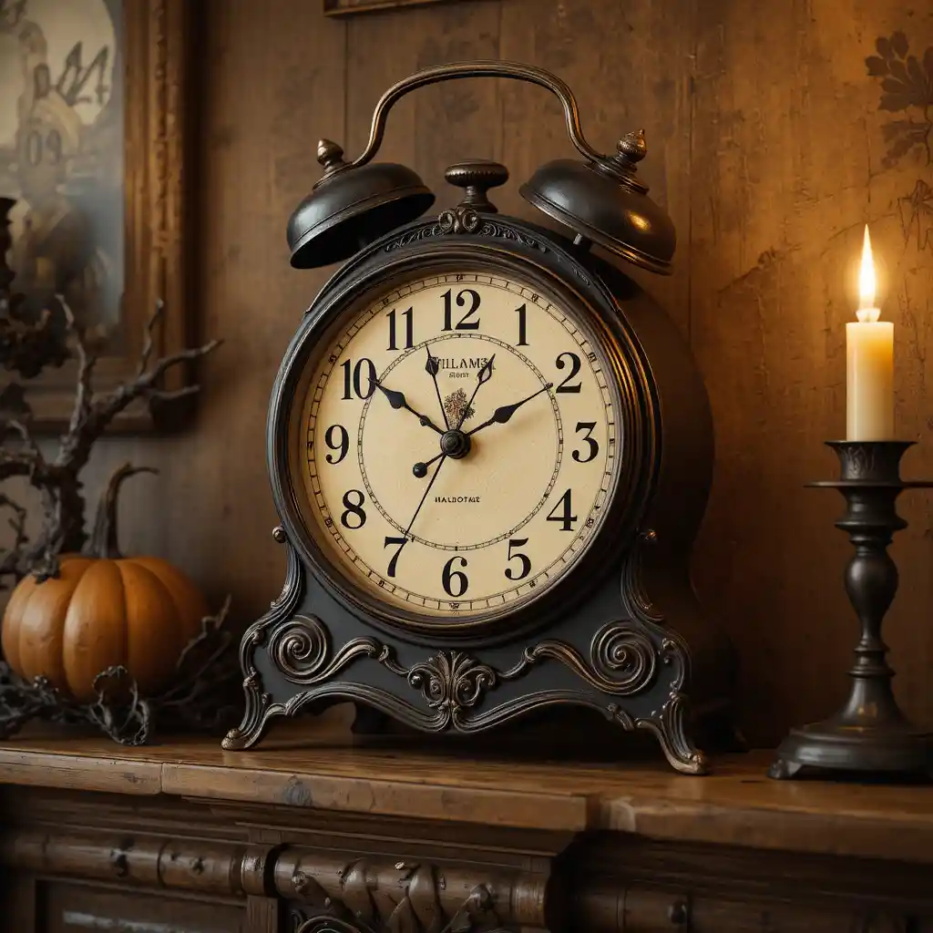 Set an old-fashioned clock to midnight and display it on your mantel. It creates a chilling “witching hour” vibe that enhances the vintage feel.